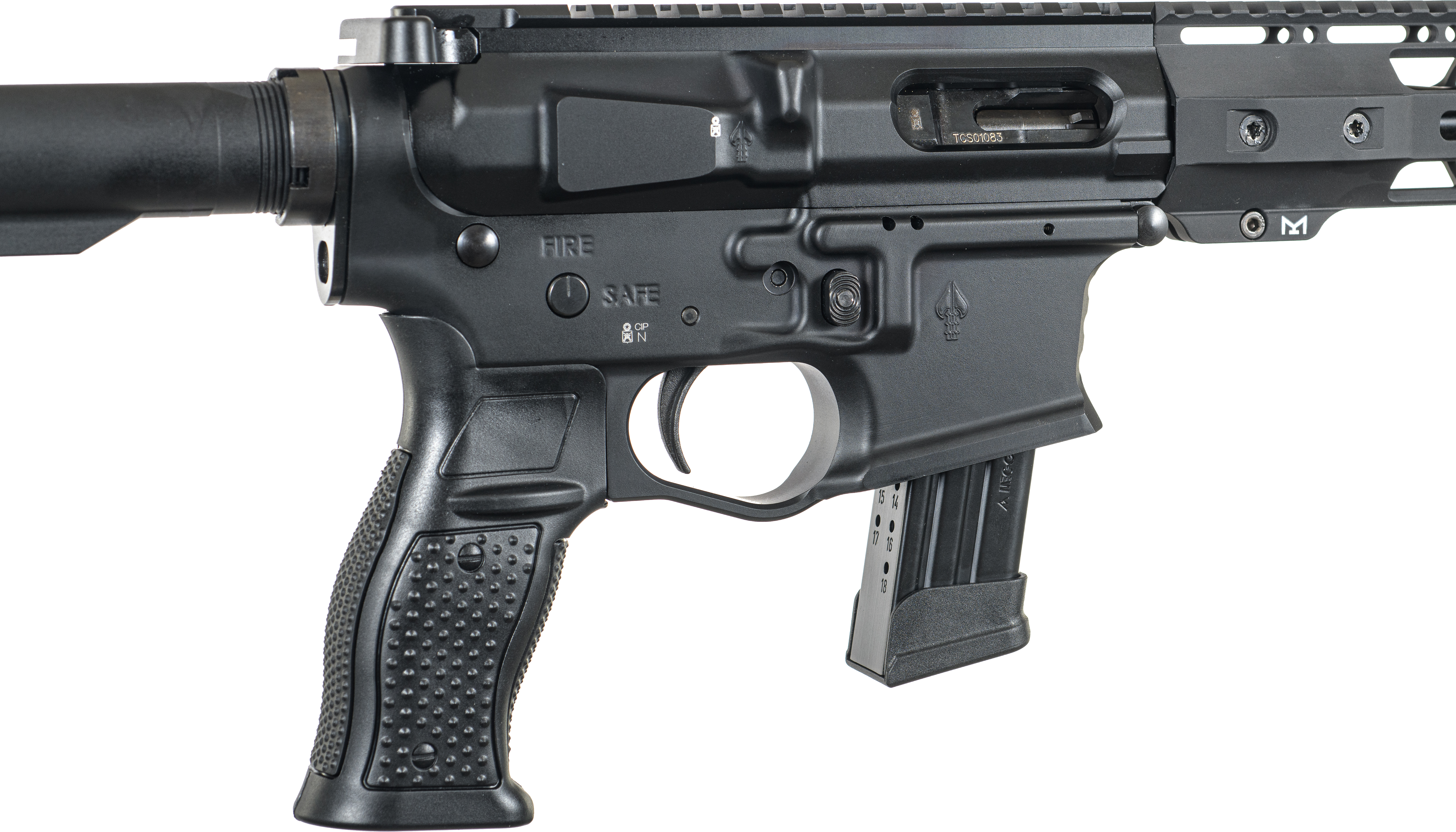 Rifla kamres i 9x19 og leveres med et 17-skudds metallmagasin av Glock-type. Den har Mil-Spec avtrekker, manuell 90° sikring og en solid buffer-tube etter Mil-Spec-standard. Kolben har seks posisjoner og leveres med gummikappe for bedre komfort, mens det ergonomiske pistolgrepet i polymer har en 15° vinkel for optimal kontroll. Riflen har et meget godt avtrekk også med kort reset.